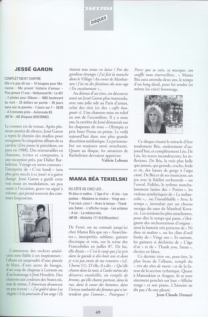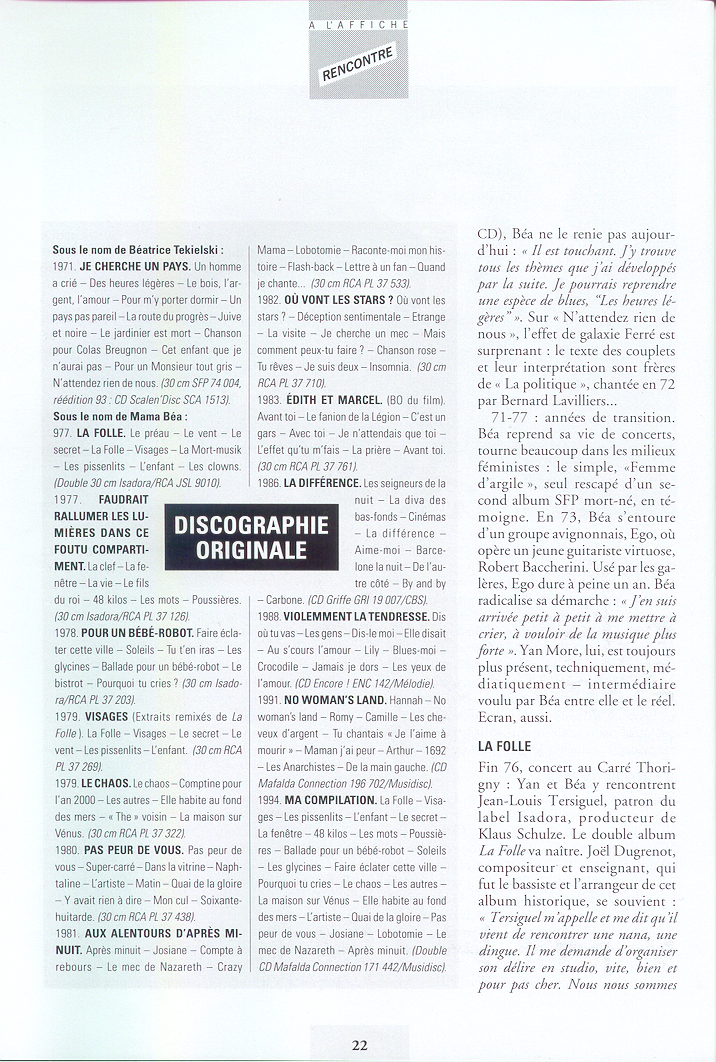 avec un CD comprenant deux inédits extraits du récital donné le 27/08/1992 durant le festival d'Othe à Saint-Florentin : Tu chanteras et La mauvaise graine.