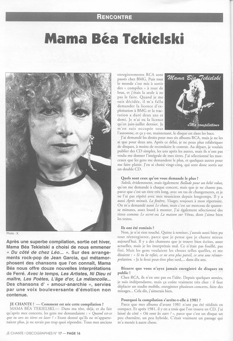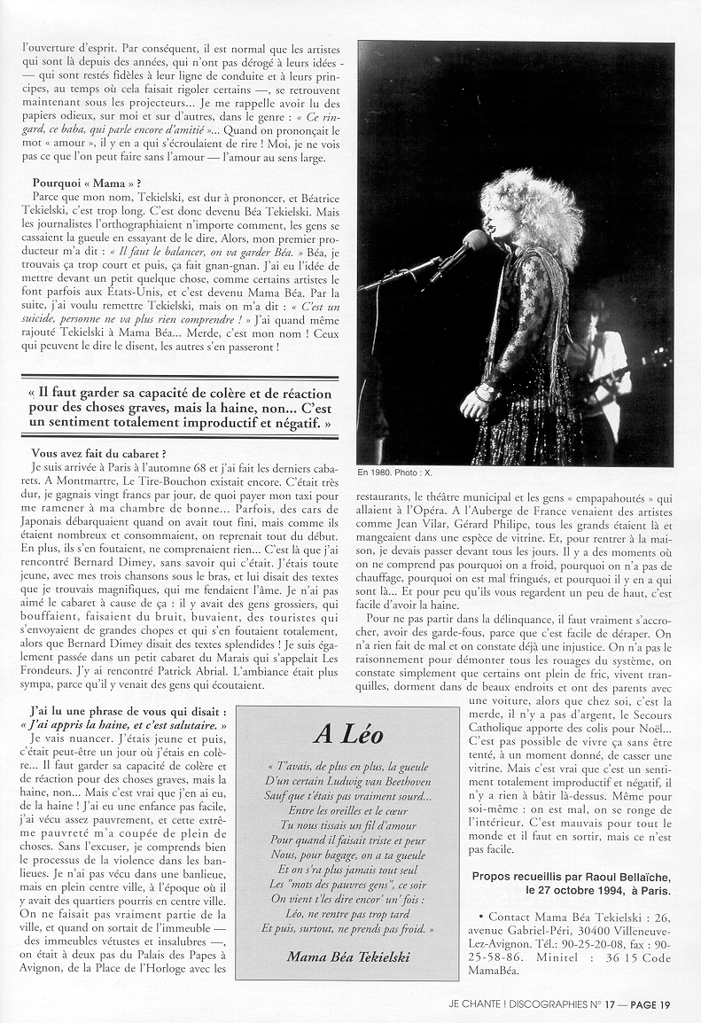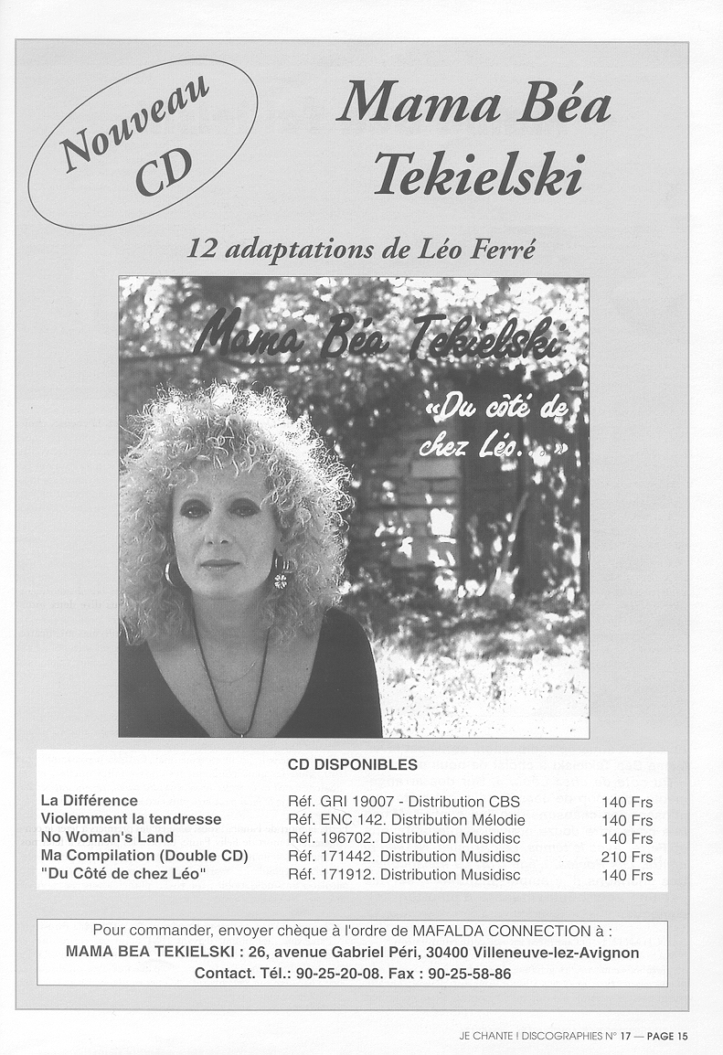 • Mama Béa Tékielski - Nouvel album Nouveau spectacle "Du côté de chez Léo..."