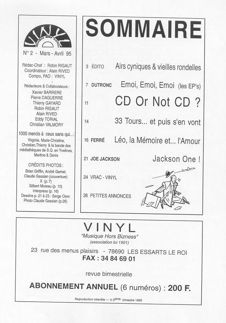 Vinyl N°2, bimensuel de Mars Avril 1995