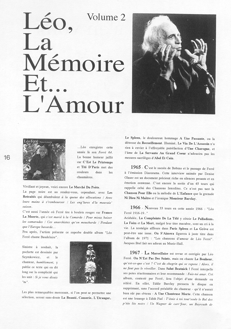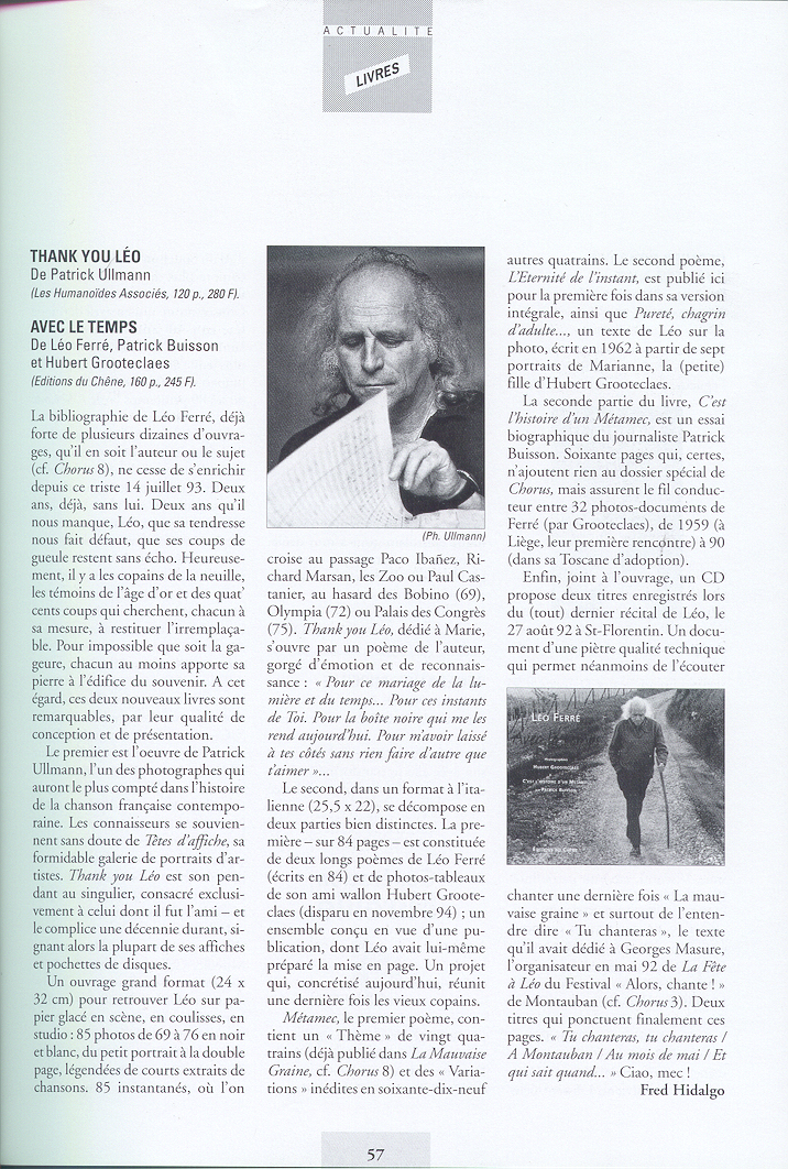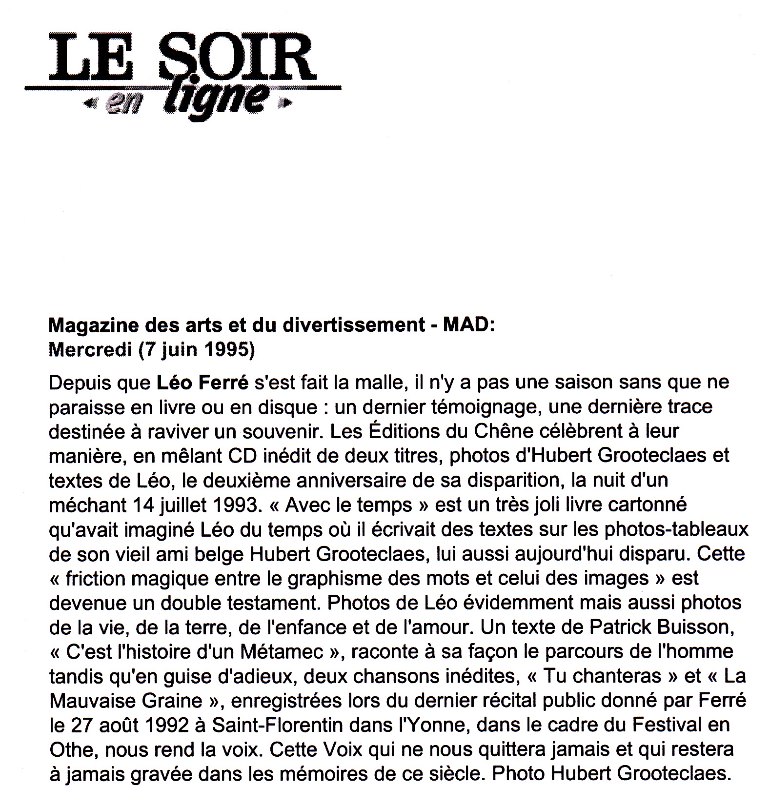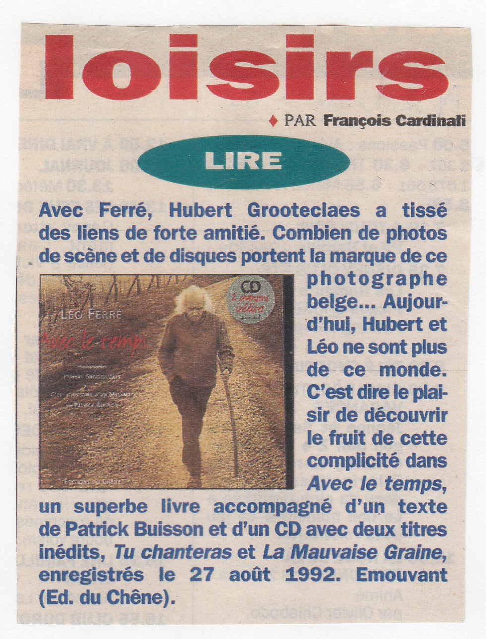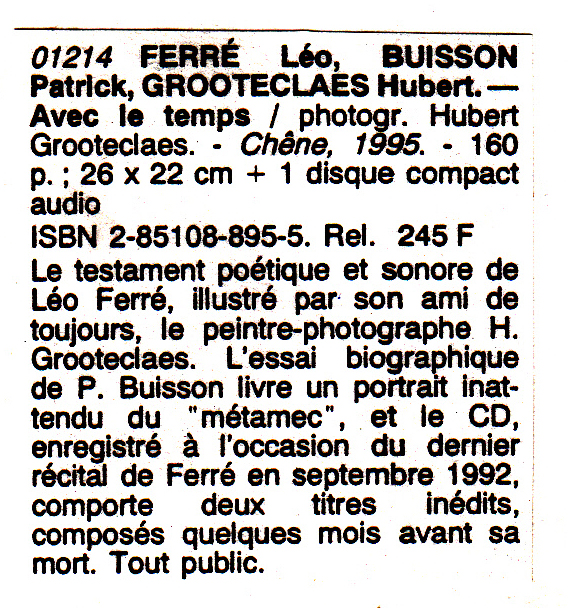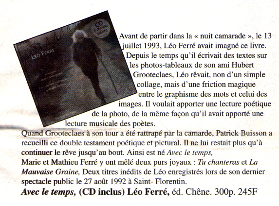 "Avec le temps" - Textes de Léo Ferré - Photos d'Hubert Grooteclaes - "C'est l'histoire d'un métamec" par Patrick Buisson Editions du Chêne - Mai 1995