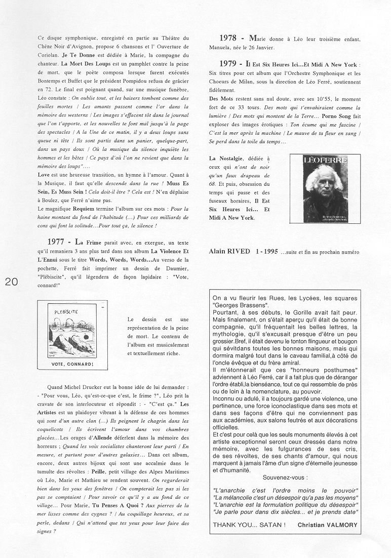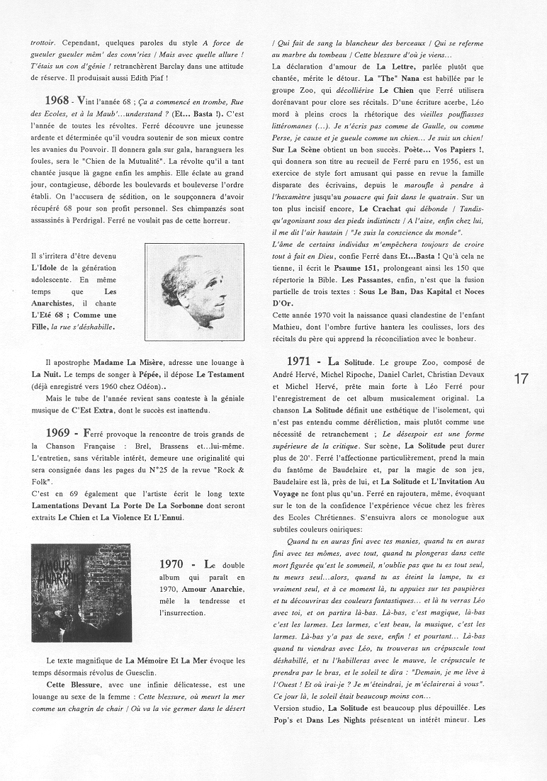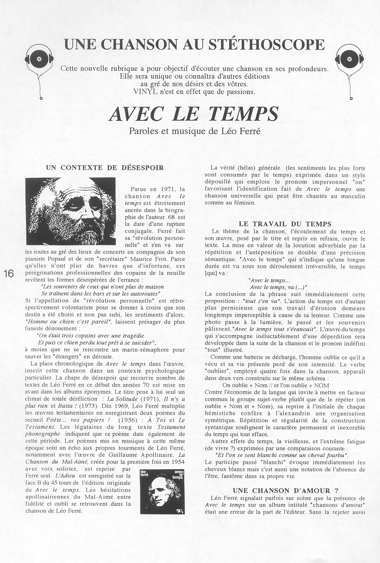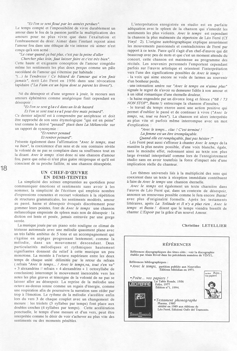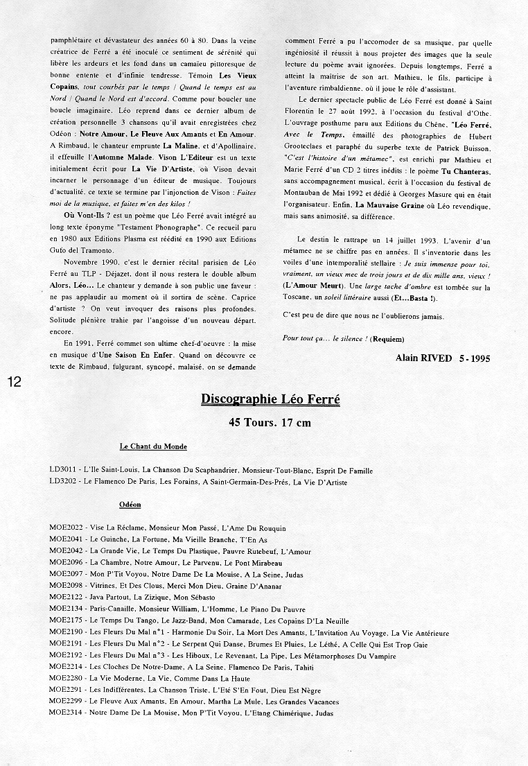 "Avec le temps" - Textes de Léo Ferré - Photos d'Hubert Grooteclaes - "C'est l'histoire d'un métamec" par Patrick Buisson Editions du Chêne - Mai 1995