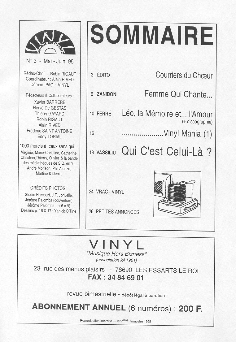 Vinyl N°3, bimensuel de Mai Juin 1995