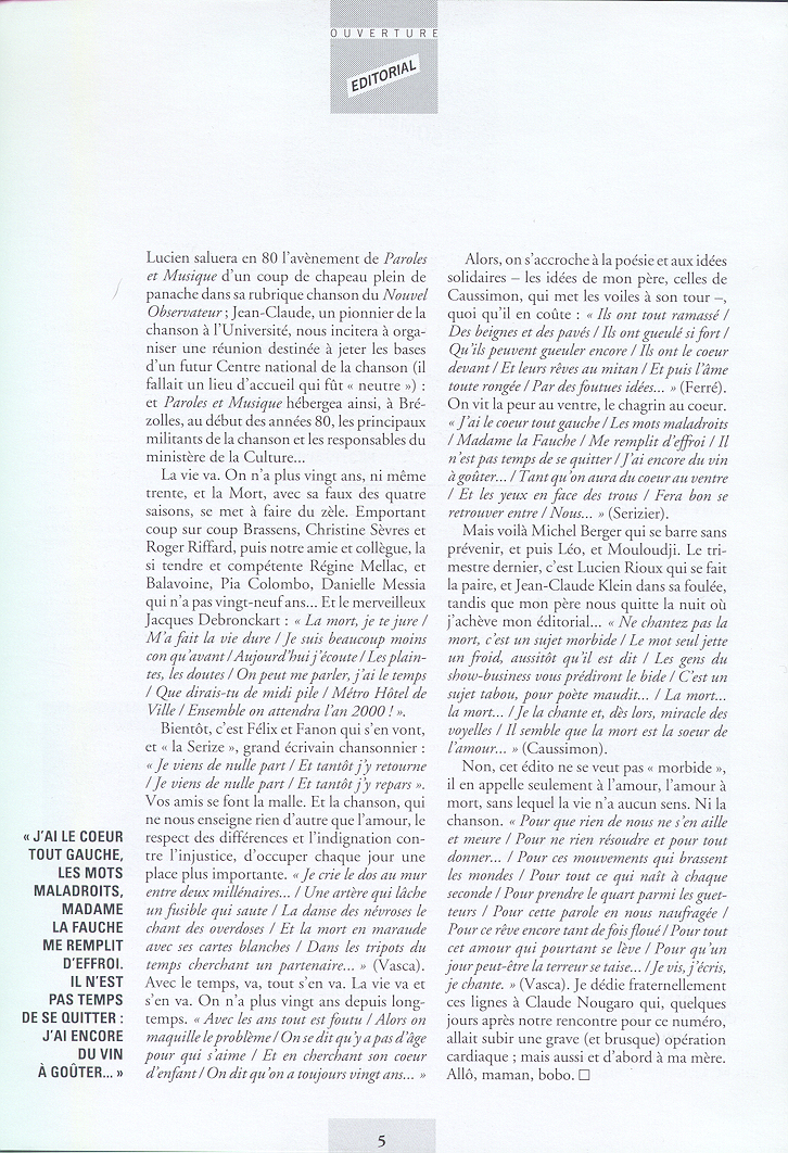 Chorus N°12, Trimestriel de Juillet à Septembre