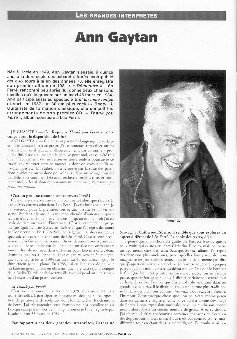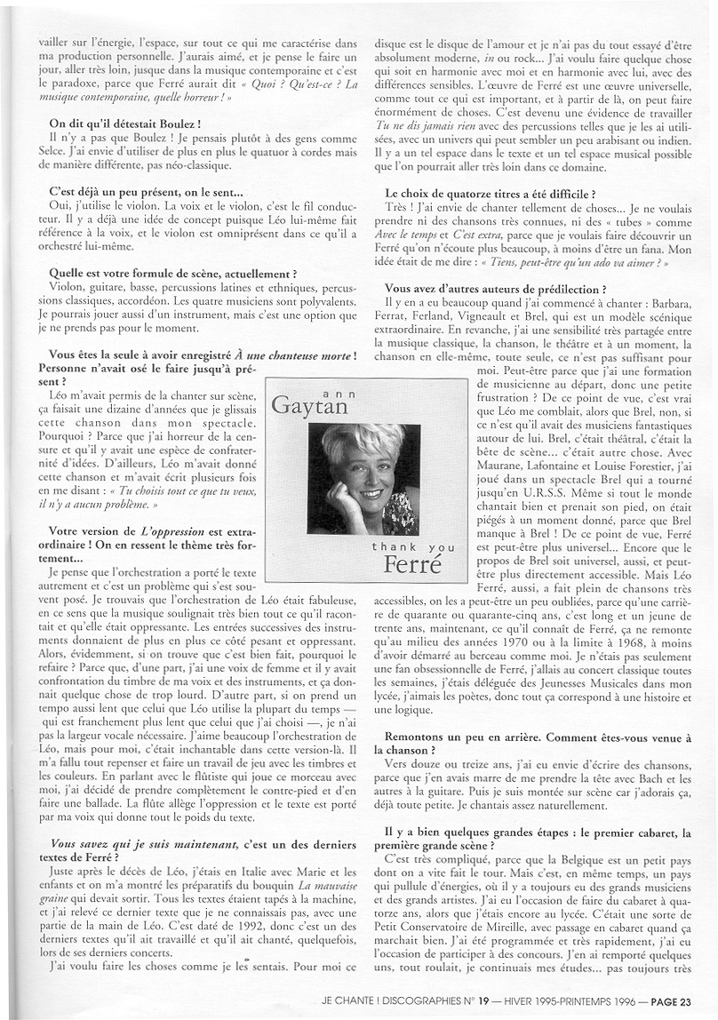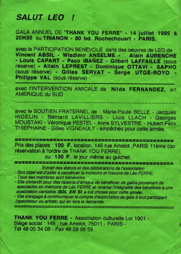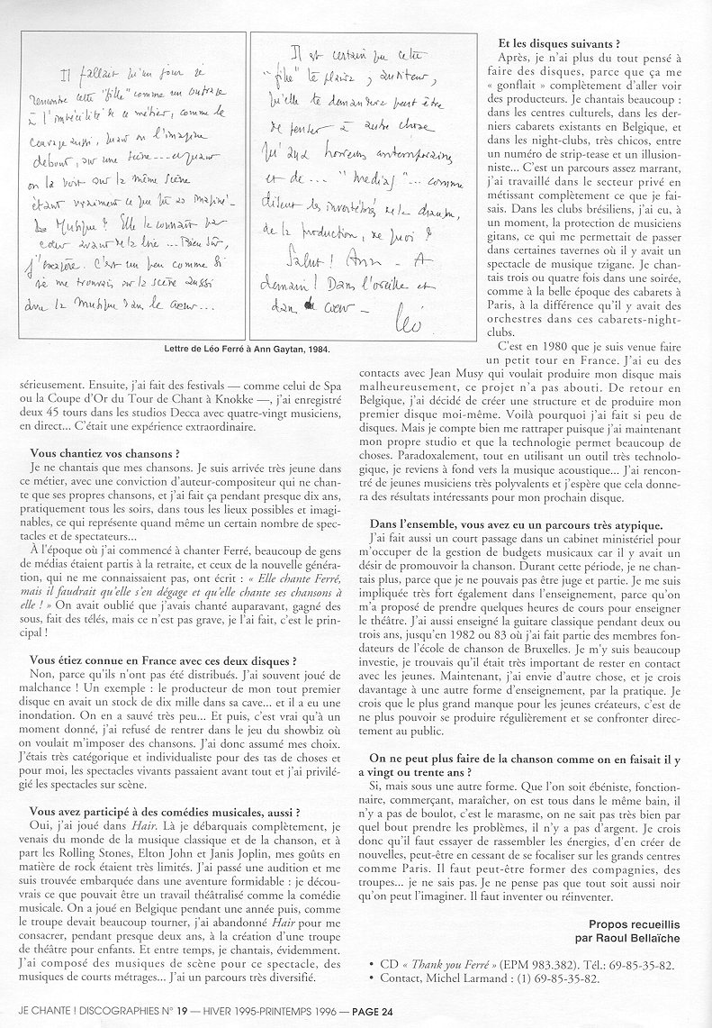 • Lettre de Léo Ferré à Ann Gaytan, 1984