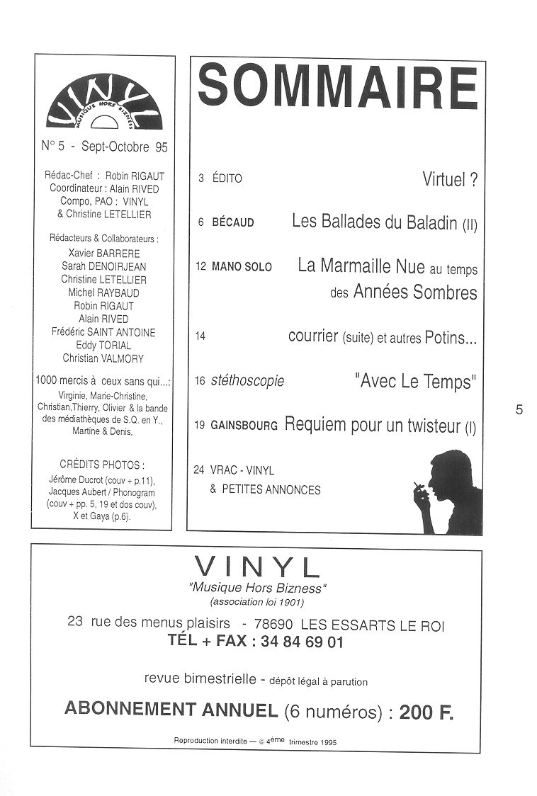 Vinyl N°5, bimensuel de Septembre Octobre 1995