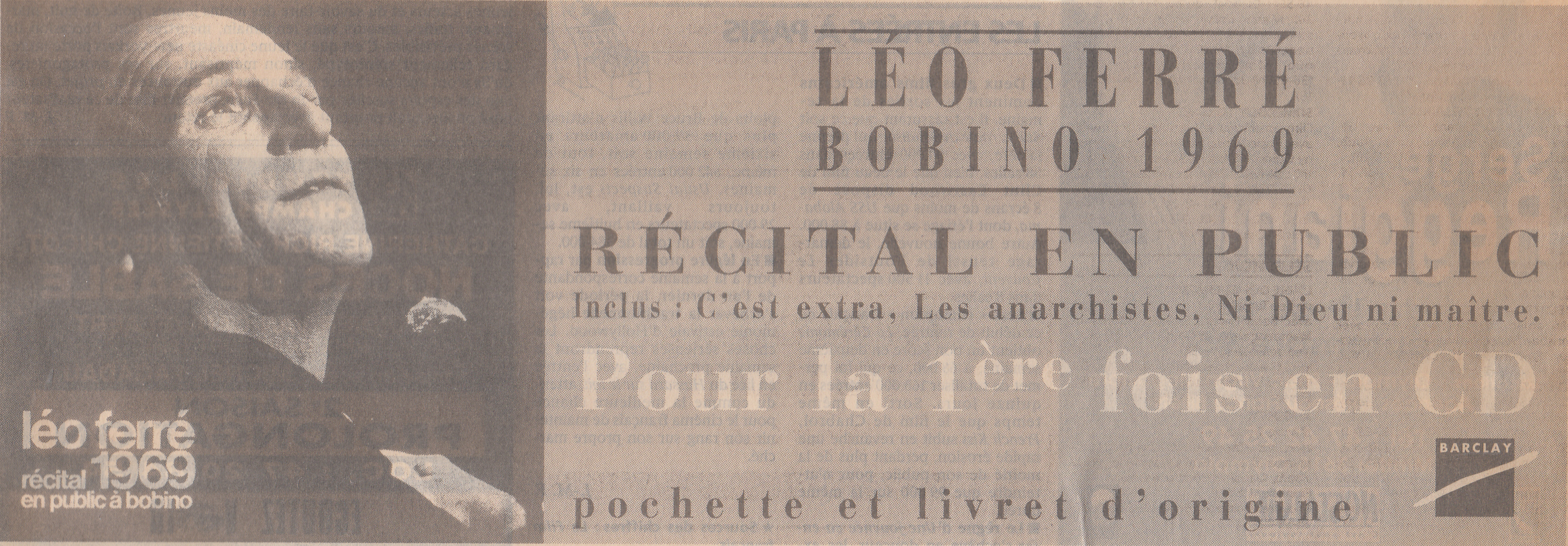 • Publicité pour "Léo Ferré - Bobino 1969"