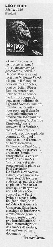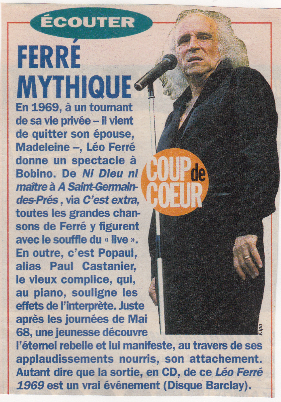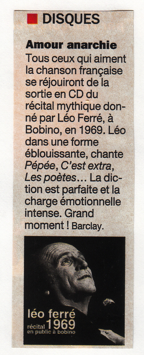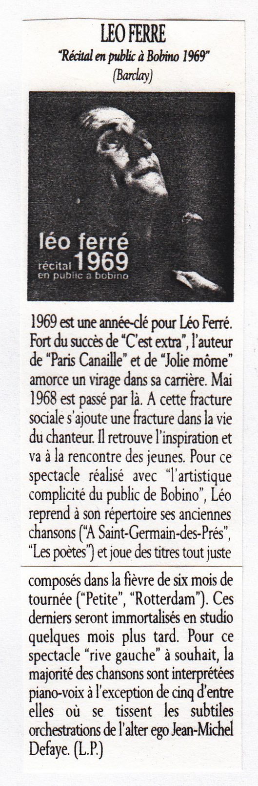 • Léo Ferré Bobino 1969 pour la 1ère fois en CD