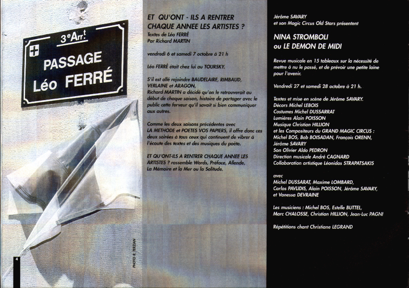 Théâtre TOURSKY Saison 95-96 - 06 et 07/10/1995