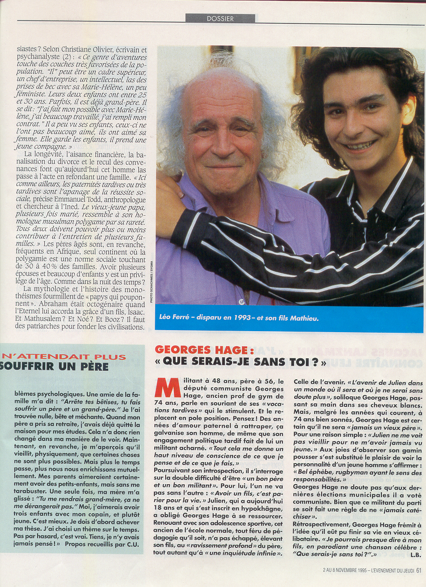 • Le baby-boom des vieux-jeunes papas, dossier dirigé par Élizabeth Gouslan et Claire Ulrich